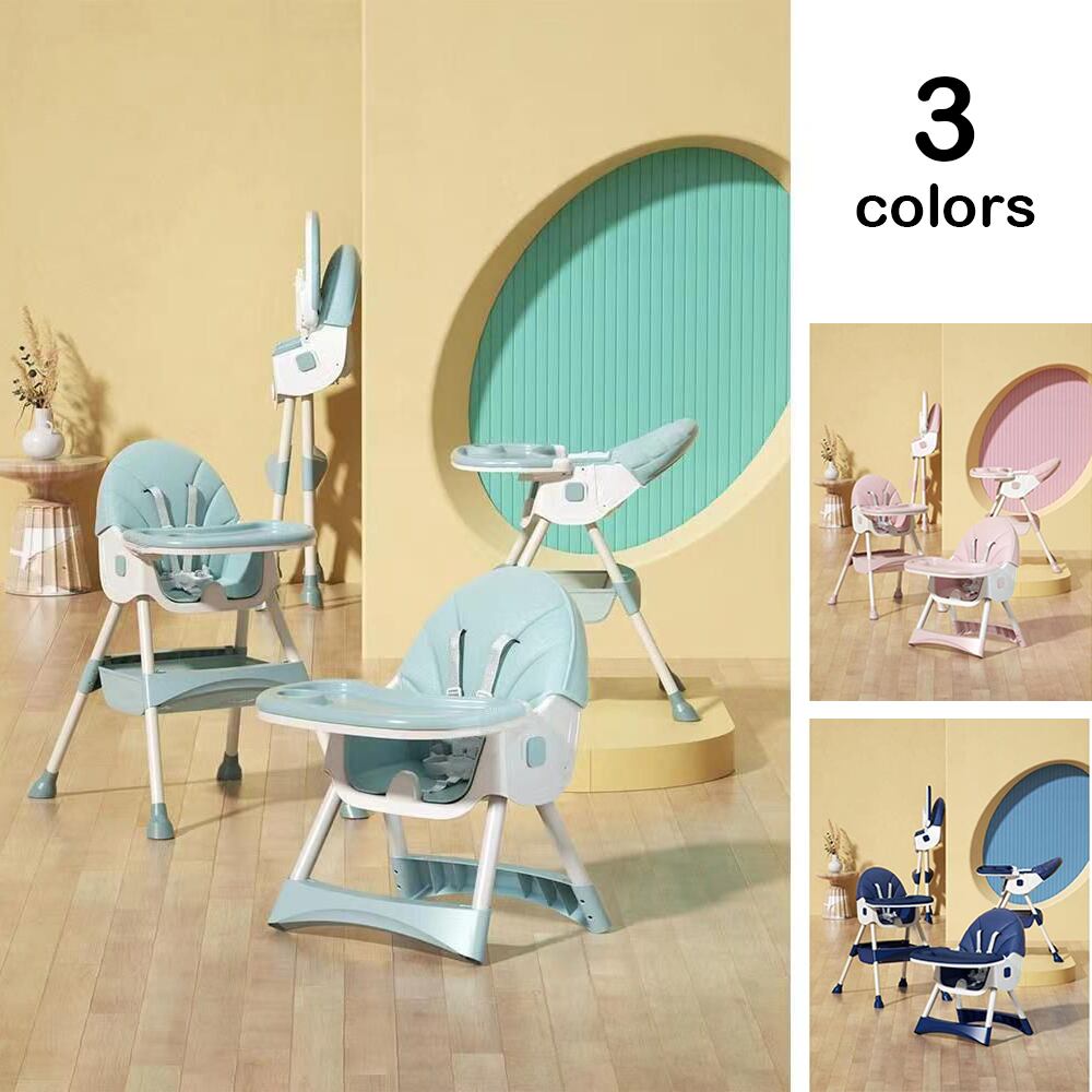 ベビーチェア 折りたたみ 多機能 ハイチェア ローチェア ハイローチェア 高さ調節 キャスター付き 椅子 ピンク グリーン ネイビー 3色