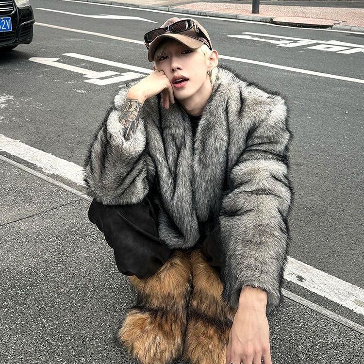 ファー ジャケット ショート丈 韓国 モコモコ アウター 韓国 長袖 おしゃれ 冬 防寒 メンズ グレー