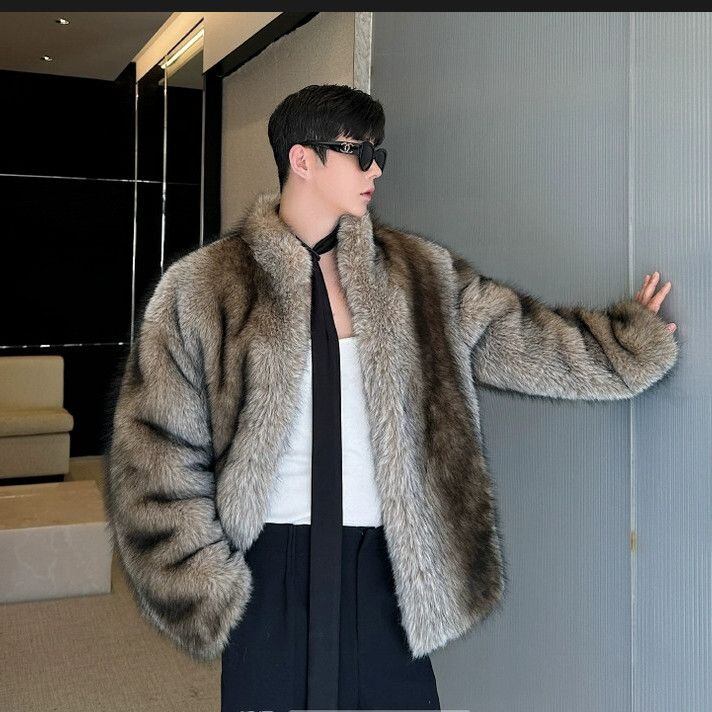 ファー ジャケット ショート丈 韓国 モコモコ 防寒 アウター 韓国 長袖 大きめ 無地 おしゃれ 冬 メンズ ブラウン