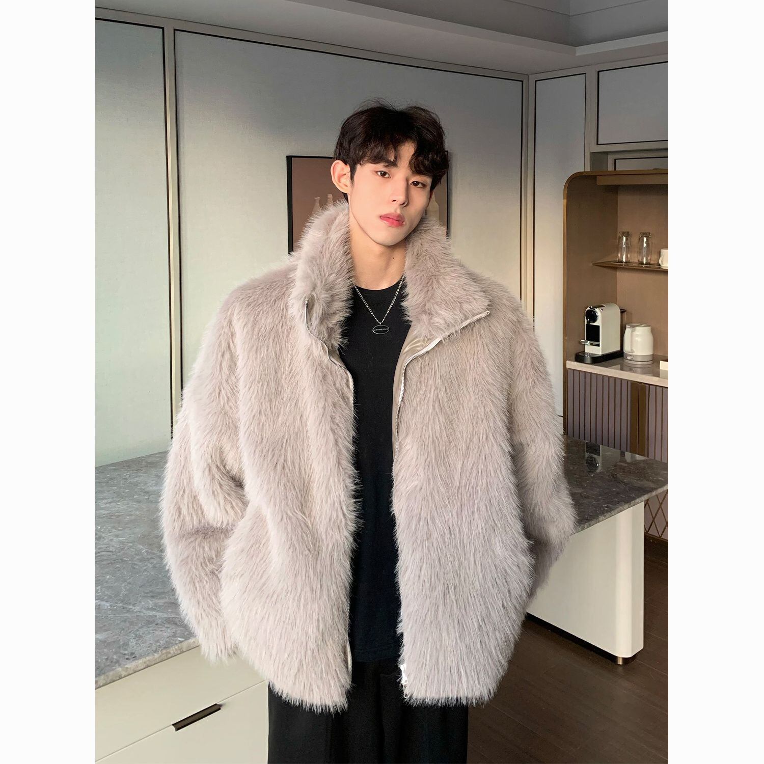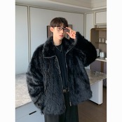 ファー ジャケット ショート丈 韓国 モコモコ 防寒 アウター 韓国 長袖 大きめ 無地 おしゃれ 冬 メンズ ブラック カーキ