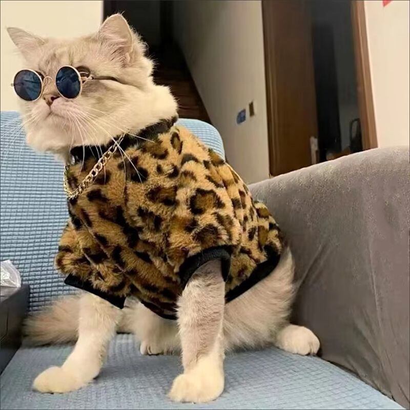 犬服 猫服 ヒョウ柄の服 ヒョウ柄 猫の服 猫用ウェア 猫用 秋冬用 抜け毛防止 かわいい