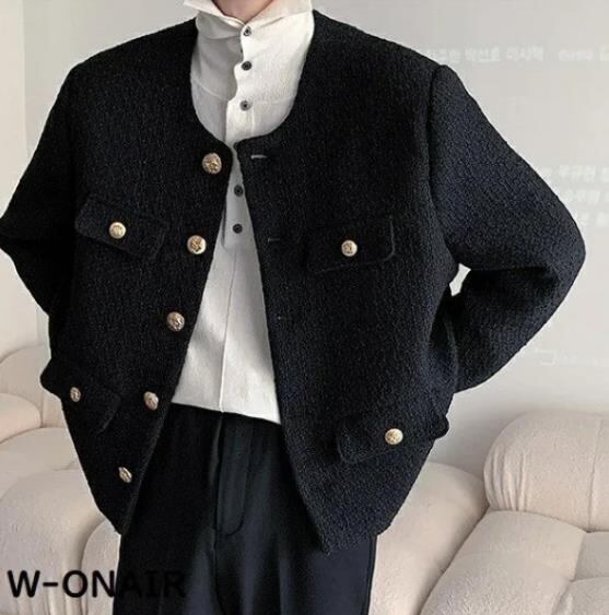 【週末限定価格】 メンズ ツイード ジャケット ラグジュアリー ノーカラー パーティ スタイリッシュ 大人気 春秋冬活躍