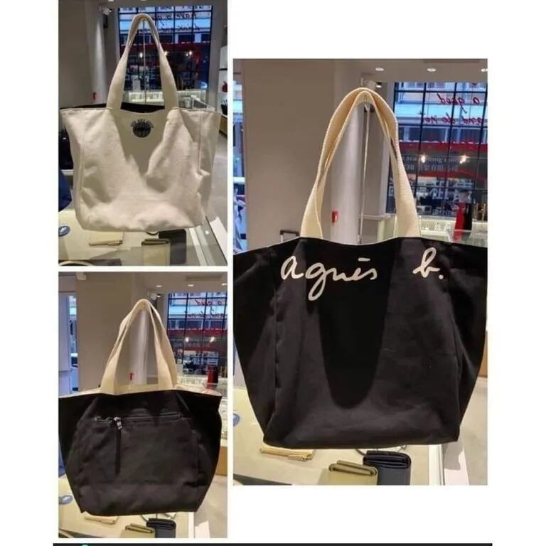 新品 agnes b. アニエスベー ロゴ トートバッグ 大容量 リバーシブルバイカラーキャンバス トートバッグ ショルダーバッグ 男女兼用