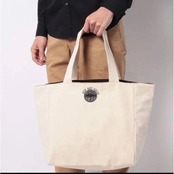 リバーシブル仕様のキャンバストートバッグ。アニエスベー本人が選んだSUN AND SNOWモチーフの刺繍がフロント中央に、左サイドにはさりげなくトーンオントーンでブランドロゴのプリントが入っています。バッグ内側には、表のカラーと同色のブランドロゴがフロントに大きく入ったデザイン。